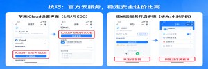 第一,苹果用户开iCloud,每月6块钱50G,够用。安卓用户开手机自带的云空间,华为小米OV都有,价格差不多。
